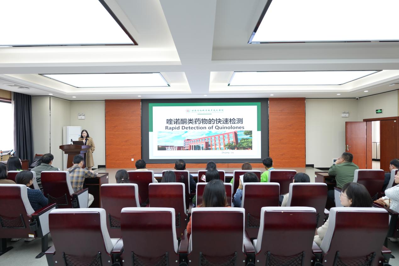 研修班学员共29人,分别来自缅甸、泰国与老挝,均为各国农业领域的技术专家与管理人员。实训环节由动物科技学院刘祝英博士主讲,重点讲解了喹诺酮类药物的快速检测方法,并作了现场演示。此外,课程还介绍了我校在食品智能加工技术与食品检验检测技术两个专业的建设成果。