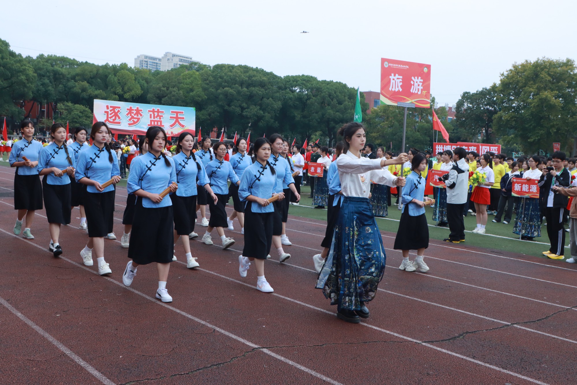 黎移新致开幕词。他指出,学校在高质量发展的进程中始终高度重视体育工作,在过去的一年中,我校学子在各类体育竞赛中奋勇拼搏,捷报频传,取得了骄人的成绩,这些成绩的取得充分彰显了学校全体师生昂扬向上的精神风貌。他希望,学校全体师生以此次运动会为契机,把比赛中的良好精神风貌融入到今后的学习、工作和生活中去,团结奋进、乘势而上,为加快建设高质量高职院校贡献力量。