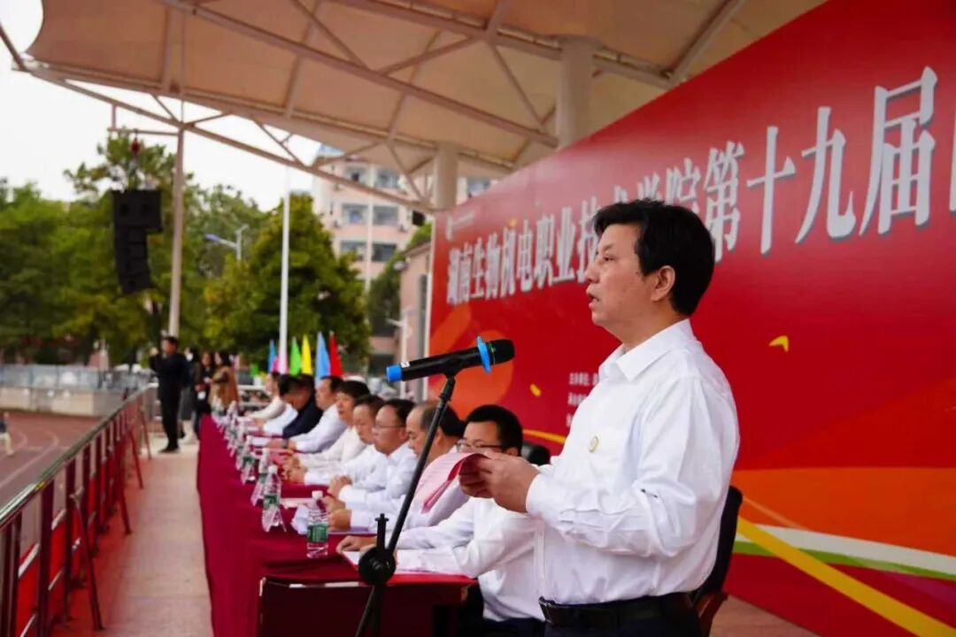 11月6日至7日,湖南生物机电职业技术学院第十九届田径运动会在学校东湖校区体育场举行。学校党委书记毛祥成出席开幕式并宣布运动会开幕。学校党委副书记黎移新致开幕词,开幕式由学校党委委员、副校长何荣誉主持。