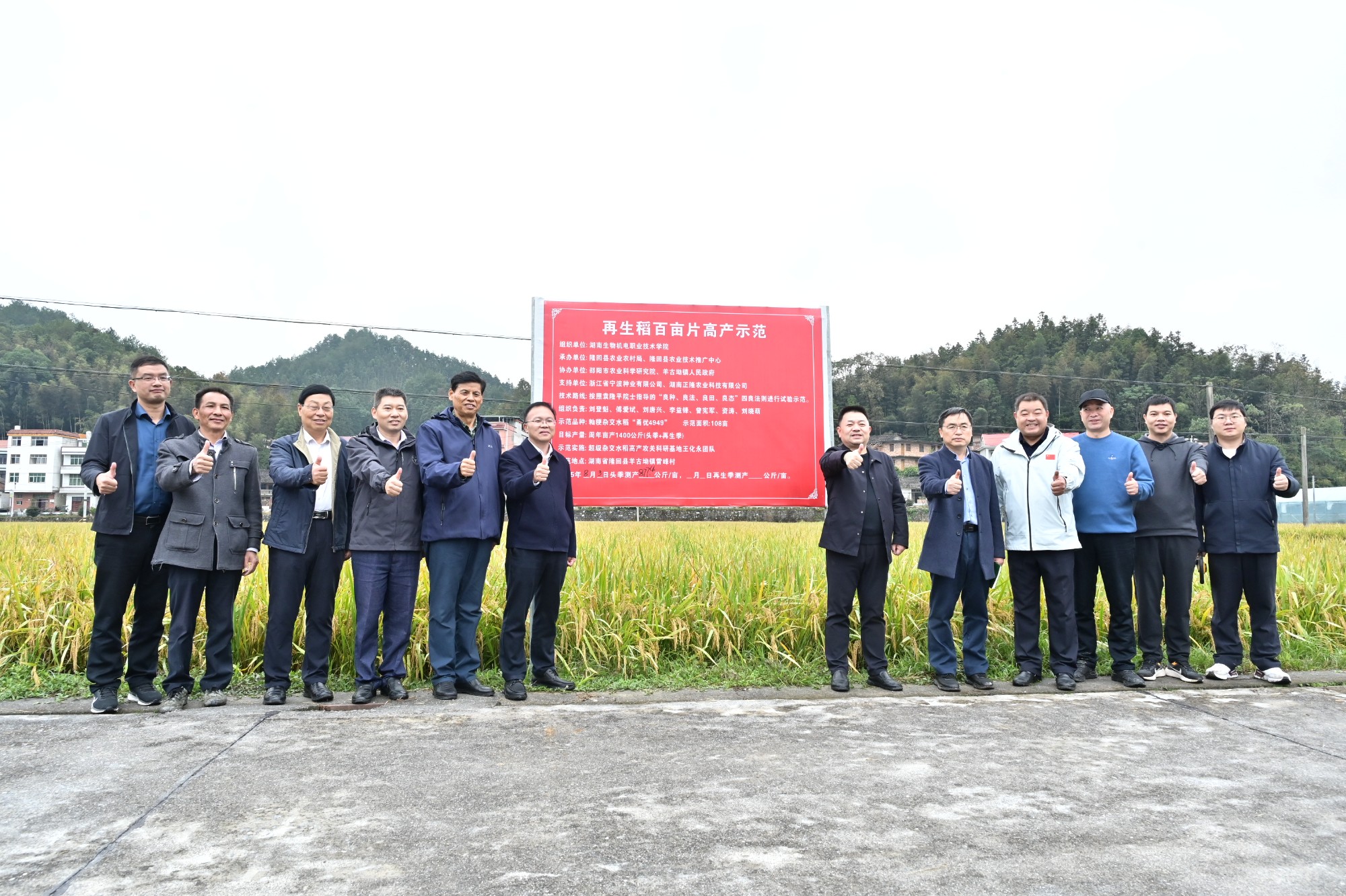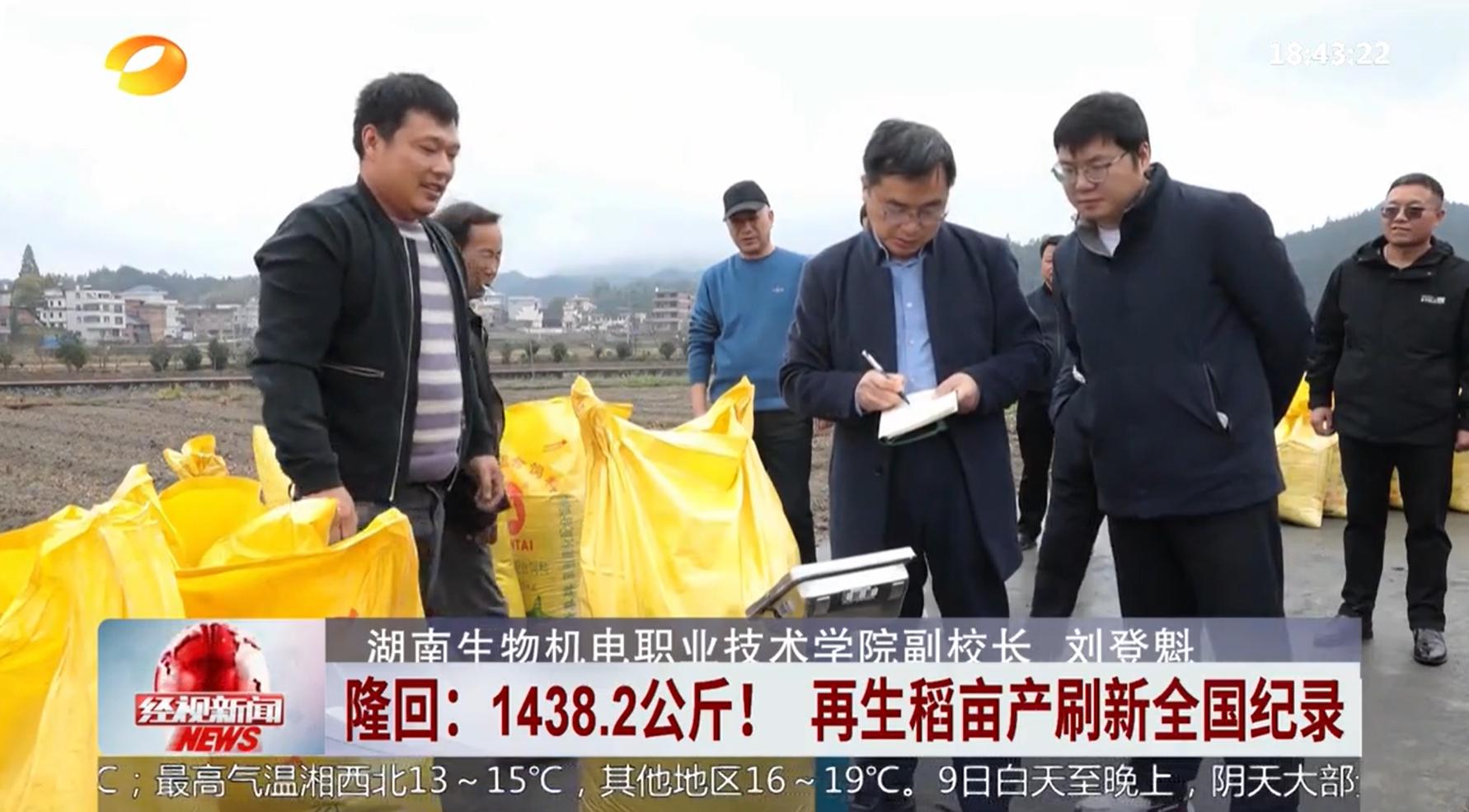 11月7日,我校羊古坳再生稻高产攻关基地传来震撼消息:经湖南省作物协会组织的专家测产,该基地再生稻再生季亩产达560.8公斤,叠加头季亩产877.4公斤,周年亩产高达1438.2公斤,成功刷新我国再生稻高产纪录。这一突破性成果迅速引发主流媒体聚焦与社会各界热议,湖南卫视、湖南经视、中国新闻网、湖南日报、新湖南等权威媒体全程跟踪报道,相关新闻阅读量累计突破50万次,成为大众关注的焦点话题。