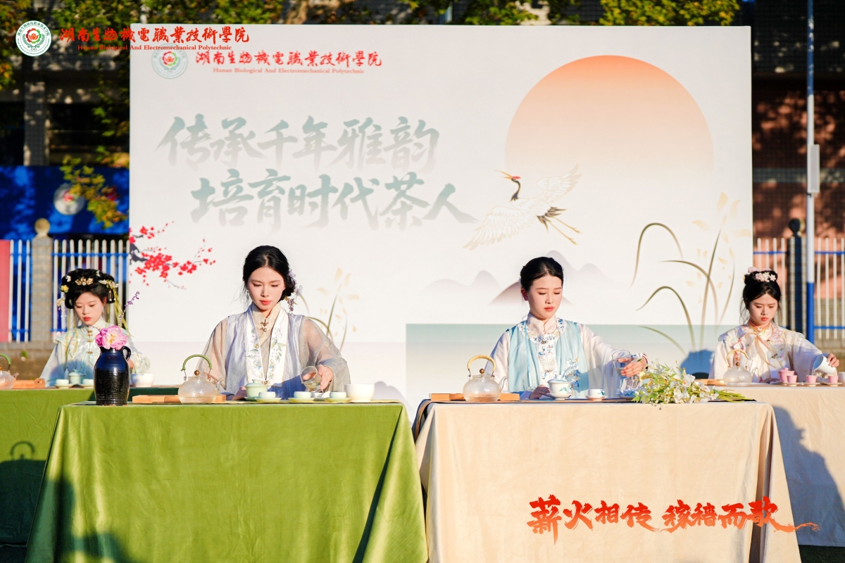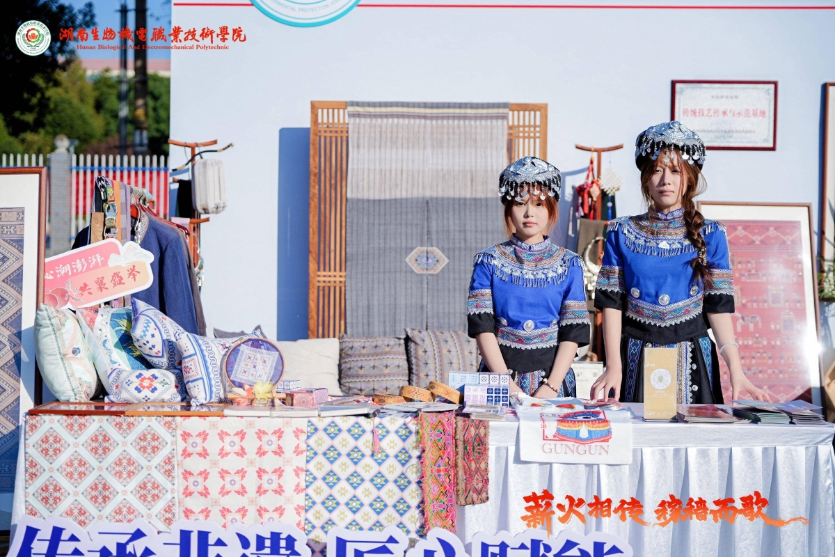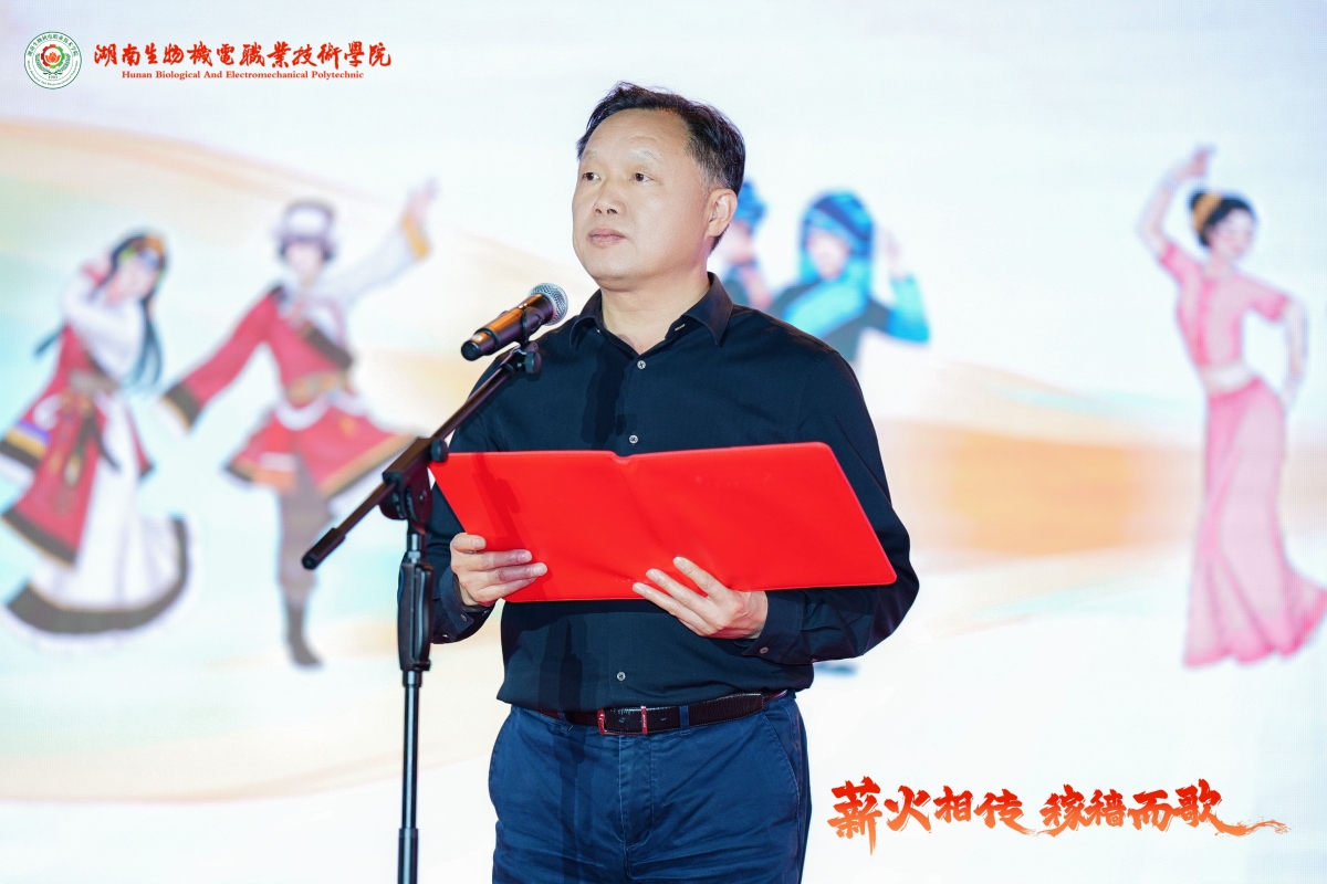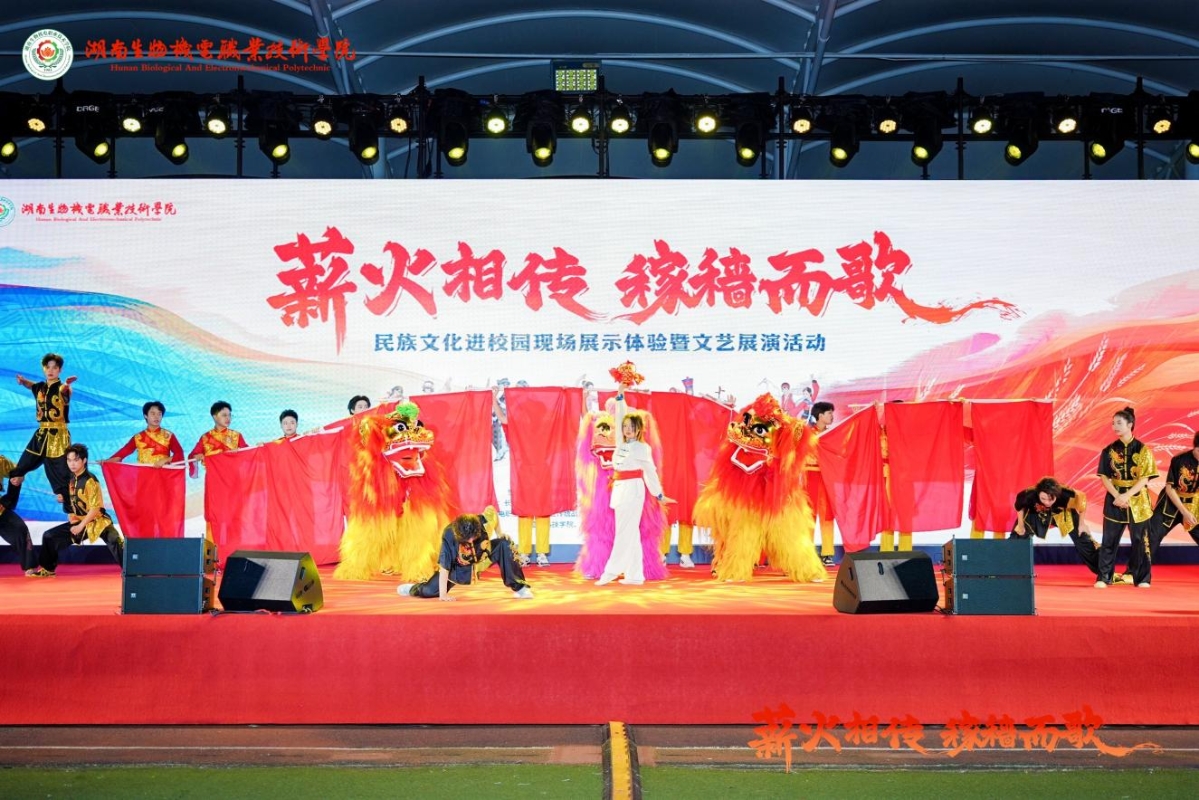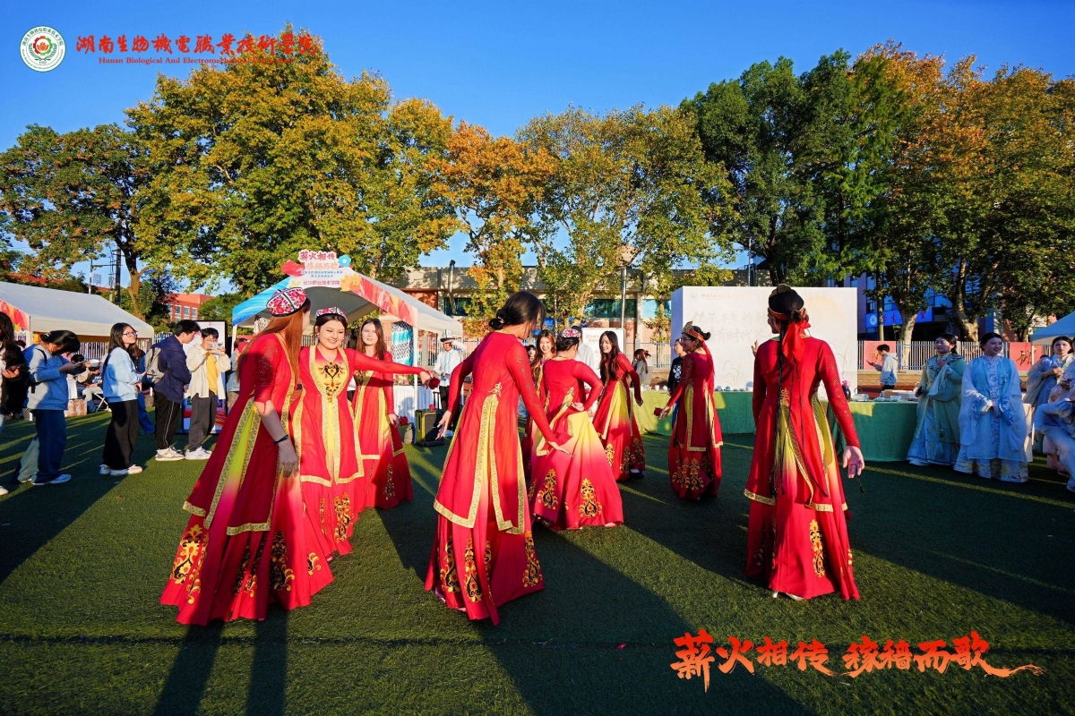 为进一步弘扬中华优秀传统文化,丰富在校师生及周边社区居民文化生活,推动广大师生和人民群众铸牢中华民族共同体意识教育走深走实,2025年11月14日下午,湖南生物机电职业技术学院联合芙蓉区东湖街道滨湖社区开展"薪火相传 稼穑而歌"——民族文化进校园现场展示体验暨文艺展演活动。学校党委副书记、校长史明清出席活动并致辞。长沙环境保护职业技术学院、湖南机电职业技术学院、长沙职业技术学院等兄弟院校代表,中国农业银行、湖南省歌舞剧院、东湖社区居民委员会等合作单位嘉宾以及全校师生代表共同参加了此次活动。