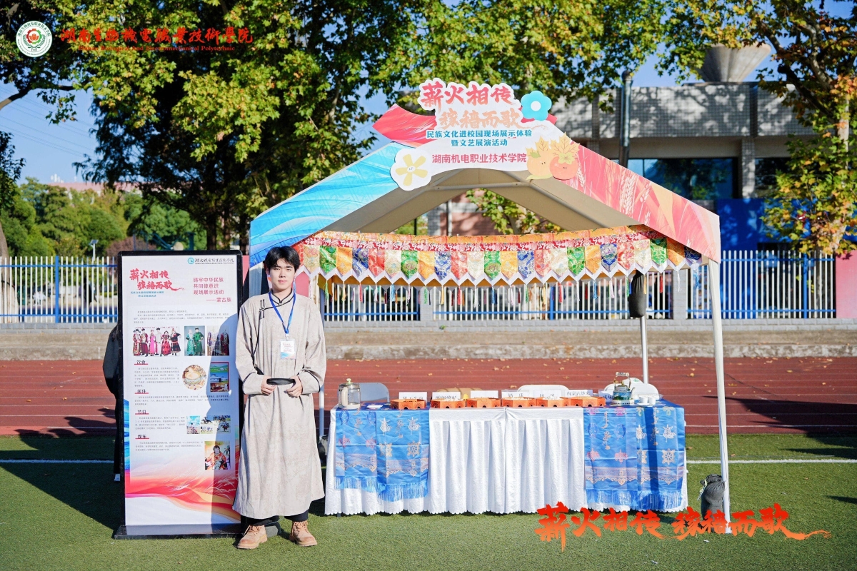 活动现场设置了民族文化展示区、互动体验区和文艺展演区三大板块。在展示区,师生们可以欣赏到精美的民族服饰和手工艺品;体验区则安排了民族歌舞教学、传统手工艺制作等互动项目;滨湖社区通过设置展板、发放资料和现场讲解等形式向与会观众宣传大学生创新创业、居民医保等相关惠民政策以及防范电信诈骗相关知识;文艺展演环节由湖南省歌舞剧院专业演员和学校师生共同呈现,为观众带来了一场精彩纷呈的民族文化盛宴。