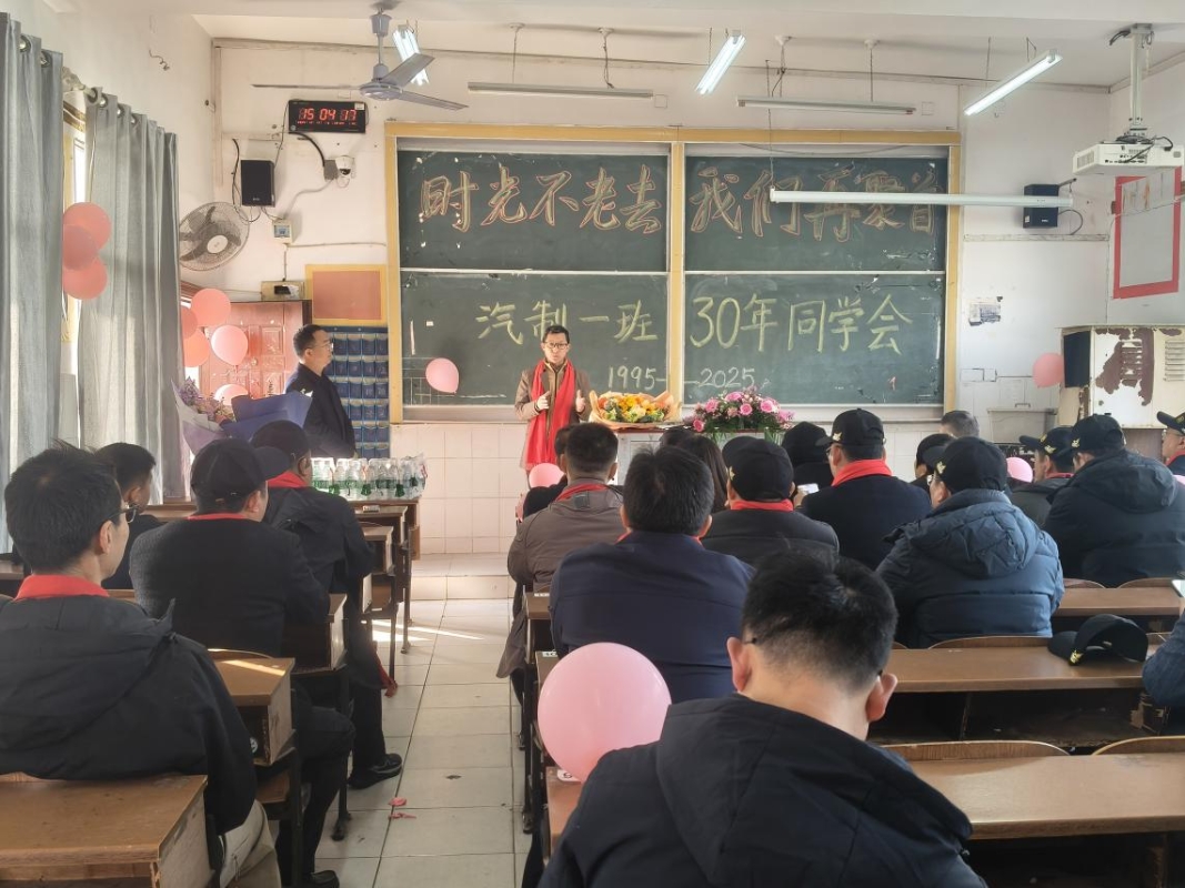 12月13日,我校汽制1班三十周年同学聚会在马坡岭校区温情举行。学校党委委员、副校长廖良林、车辆工程学院院长蒋瑞斌与班主任文光喜等恩师亲临现场,与阔别多年的学子们共叙情谊,同绘发展蓝图。
