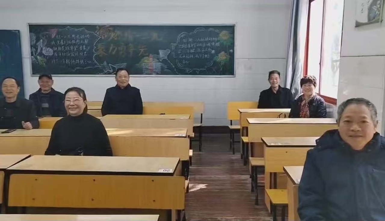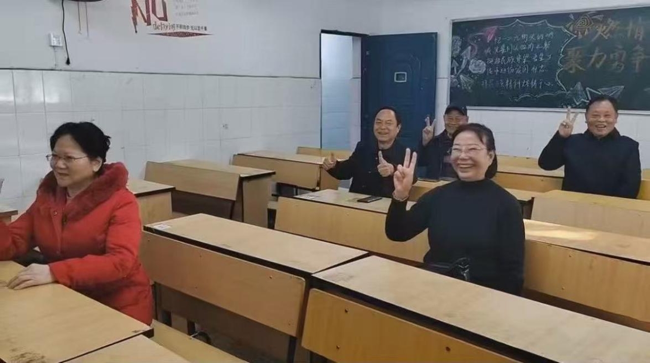 冬日的校园温情涌动。校友们首先来到了当年求学的一教学楼二楼教室,举行了一场别开生面的主题班会。熟悉的黑板、课桌,乃至旧式的木地板,瞬间将大家的思绪拉回了四十多年前那个求知若渴的年代。随后,大家漫步至承载着无数记忆的风雨亭、操场和昔日居住的宿舍区,在一草一木、一砖一瓦间寻觅青春的印记,共话往昔趣事,笑声与感慨交织。