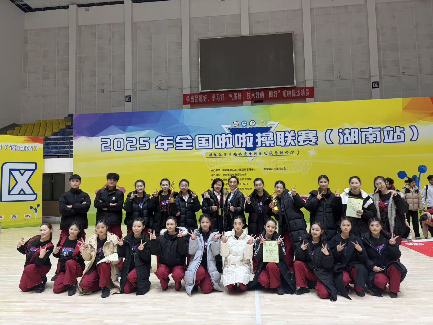 2025年12月13日至14日,2025年全国啦啦操联赛(湖南站)在湖南大众传媒职业技术学院举行。本次赛事汇聚了全国230余支参赛队伍,竞争激烈。我校学生社团“耀星啦啦队”发扬团结拼搏、追求卓越的精神,凭借出色表现荣获 “双冠一亚”的优异成绩,充分展现了我校学生社团的活力与竞技实力。