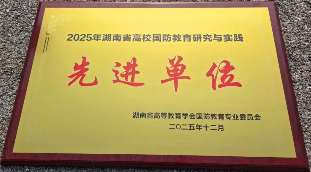 2025年,学校深入贯彻落实习近平总书记关于国防教育的重要指示精神,在校内组织开展多次国防教育实践活动,如暑期组织学校教官队到洪江市安江农校开展实践活动。同时,积极参与湖南省高等教育学会国防教育专业委员会主办的各类评比竞赛活动,取得了优异成绩,荣获省级"国防教育研究与实践先进单位"称号。
