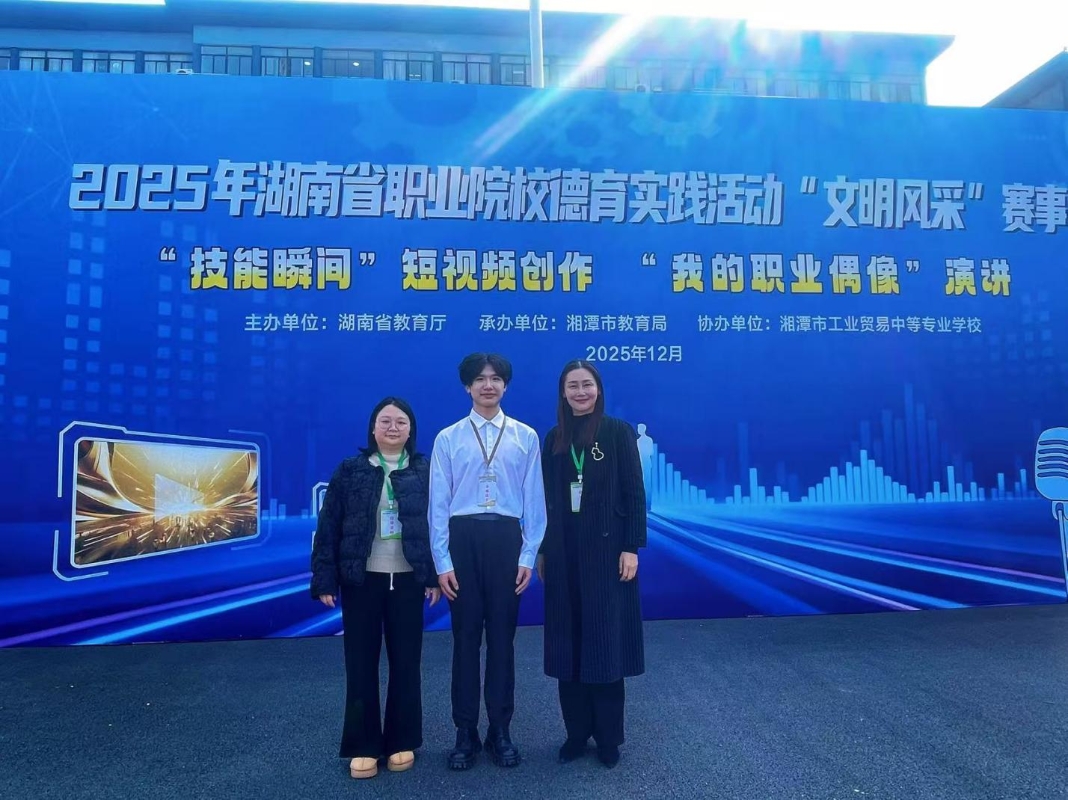 2025年12月29日,由湖南省教育厅主办的2025年湖南省职业院校德育实践活动"我的职业偶像"主题演讲决赛在湘潭工业贸易中等专业学校圆满落幕。我校动物科技学院蒲岷卓同学以题为《追榜样之"光",燃奋斗之"焰"—致敬我的职业偶像印遇龙院士》的精彩演讲,从全省高职院校选手中脱颖而出,以93.9分的优异成绩荣获高职组一等奖第一名,并代表全省高职院校进行现场展演。在同期举行的2025年湖南省职业院校德育实践活动"技能瞬间"短视频评选中,我校选送的动物科技学院谭玉婷等学生的作品《以匠之心,暖生命之光》和王洋等学生的作品《青春助力护猪圈,匠心筑梦振乡村》斩获2个一等奖、机电工程学院申佳鸿等学生的作品《毫厘锻真功我与技能共成长-工业机器人系统集成技能瞬间》获二等奖,充分展现了学校育人成效与学子风采。此次湖南省职业院校德育实践活动中,我校学子获得三个一等奖、一个二等奖的优异成绩,学校德实践育工作取得创新性突破。