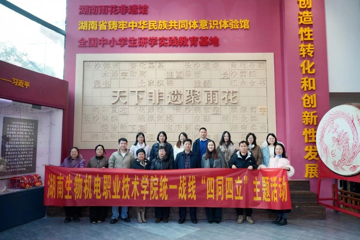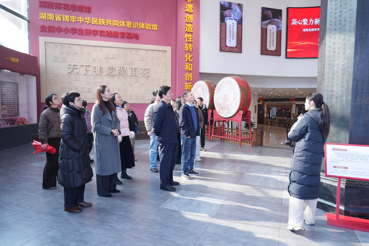 为深化统一战线思想根基,凝聚发展共识。1月6日下午,我校组织各民主党派代表20余人前往湖南省铸牢中华民族共同体意识体验馆开展"四同四立"主题活动,并举行"大思政工作馆校共建基地战略合作意向书"签约仪式,开启馆校合作新篇章。学校党委副书记黎移新,党委委员、宣传统战部部长龙雯,民主党派代表及宣传统战部全体成员参加了活动,湖南省铸牢中华民族共同体意识体验馆(湖南雨花非遗馆)馆长邓运姣出席仪式。