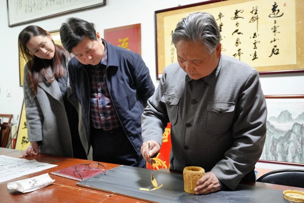 老师们在讲解员带领下参观场馆,穿梭于各非遗传习所,近距离感受滩头年画、皮影戏、泥书等湖湘非遗魅力,让静置的非遗"活"起来,触摸传统技艺的温度。通过详实的图文资料、情景体验、互动研讨等丰富形式,大家深切感受到中华优秀传统文化的深厚底蕴和新时代发展的蓬勃活力,对铸牢中华民族共同体意识的时代意义有了更深刻的领悟。