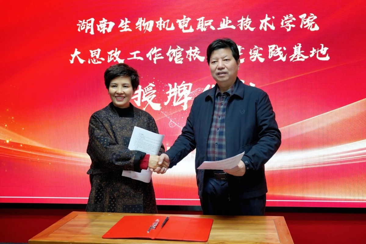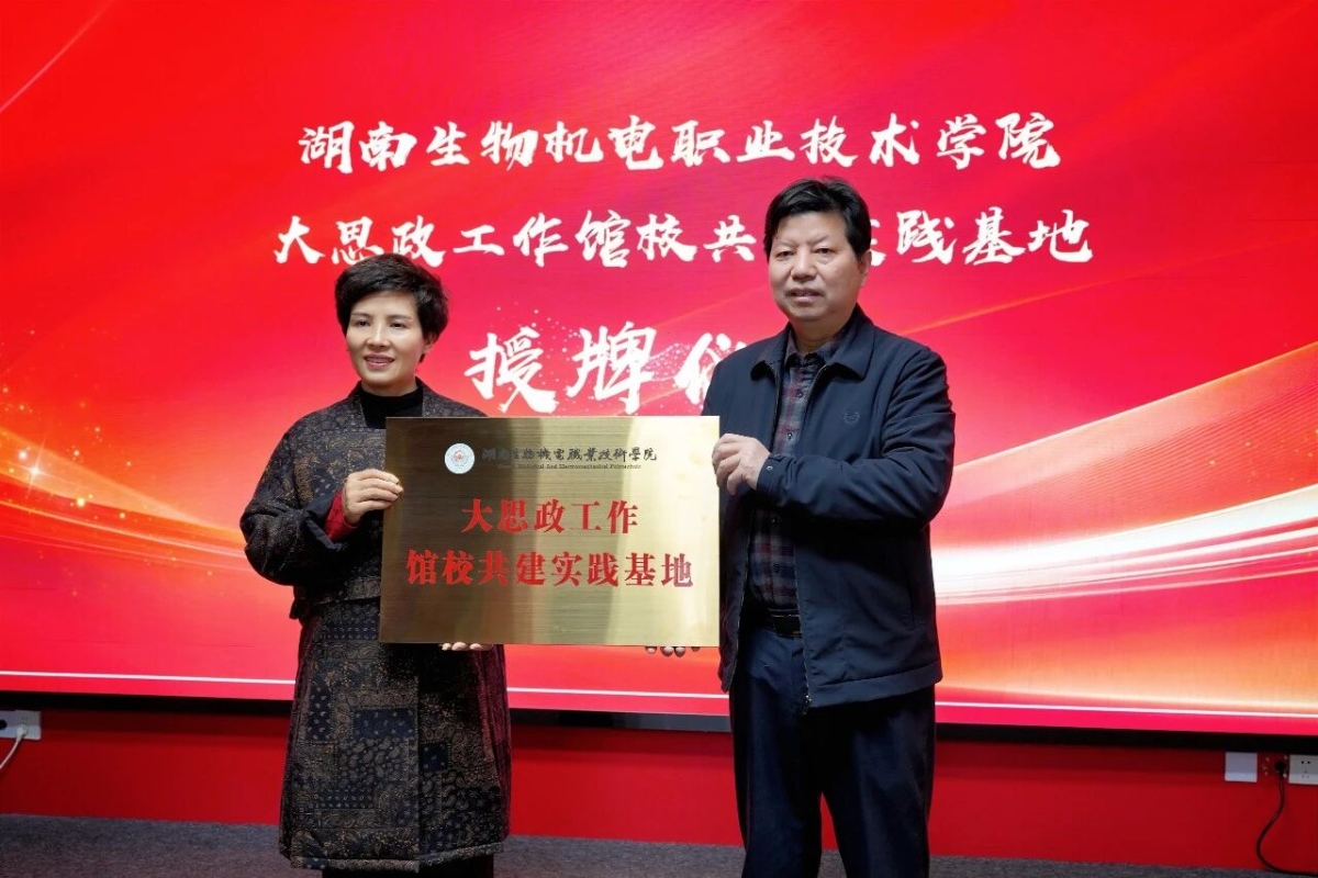 仪式上,双方就"联合开展民族文化活动、开发思政课程体系及教材及民族文化产品"等常态化交流机制达成共识。黎移新代表学校向湖南雨花非遗馆授予大思政工作馆校共建实践基地牌匾,双方一致表示将以此次合作为契机,充分发挥各自优势,打造铸牢中华民族共同体意识的育人新路径,开启"非遗+思政"育人新篇。