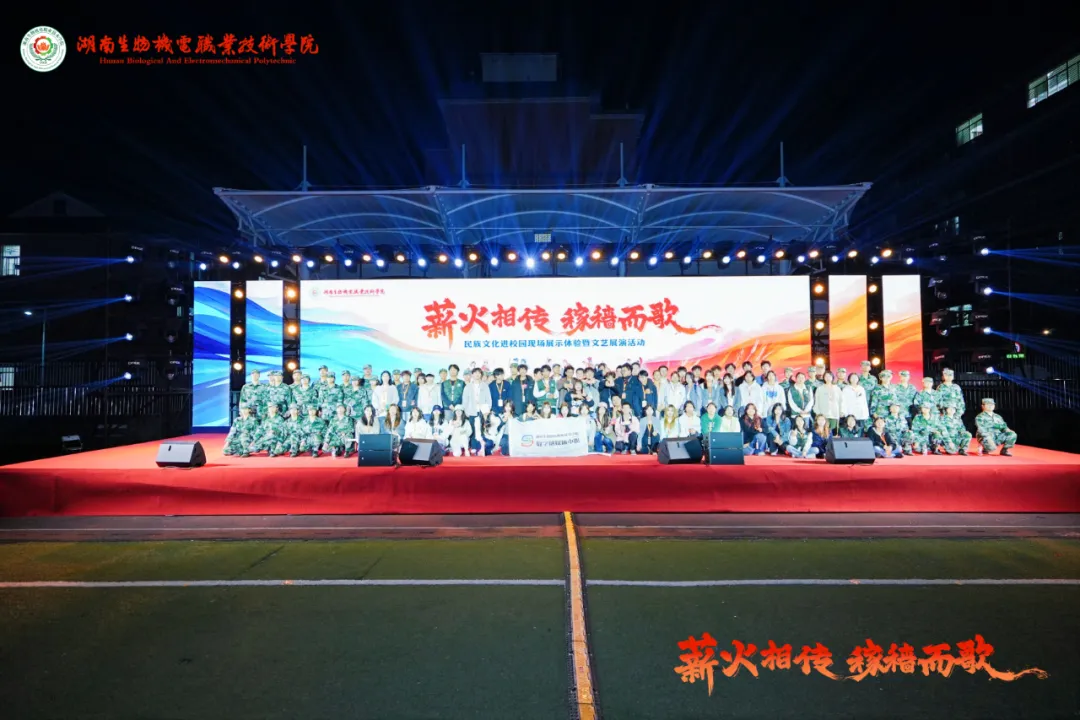 为进一步弘扬中华优秀传统文化,丰富在校师生及周边社区居民文化生活,推动广大师生和人民群众铸牢中华民族共同体意识教育走深走实,引导大家树立“四个与共”的共同体理念,近日,“薪火相传 稼穑而歌”民族文化进校园现场展示体验暨文艺展演活动在湖南生物机电职业技术学院隆重举行。