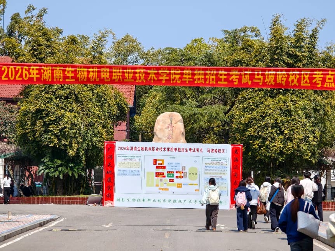 3月14日,阳光明媚,春意盎然,湖南生物机电职业技术学院2026年单独招生考试在东湖、马坡岭两个校区顺利举行。本次考试涵盖文化素质测试、职业技能测试以及体育艺术特长生专项技能测试,全面考查考生的综合素质与专业能力,全面落实科学选才要求。来自全省各地的近6000名学子怀揣梦想走进考场,现场秩序井然,考务人员精心组织考试考务工作,广大志愿者热情服务,展现了学校良好的组织能力和人文关怀。